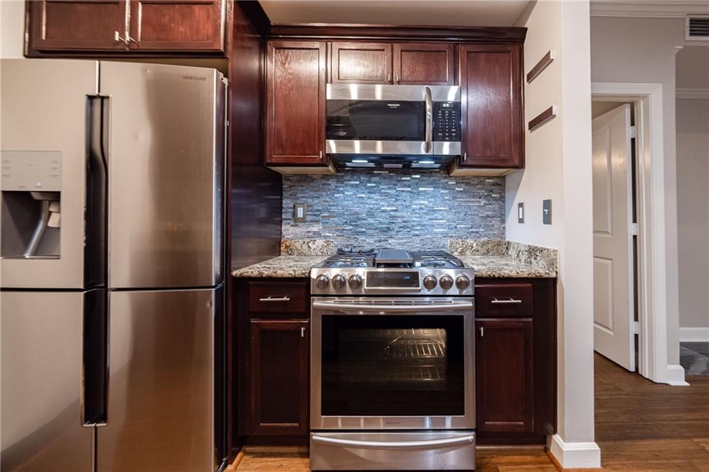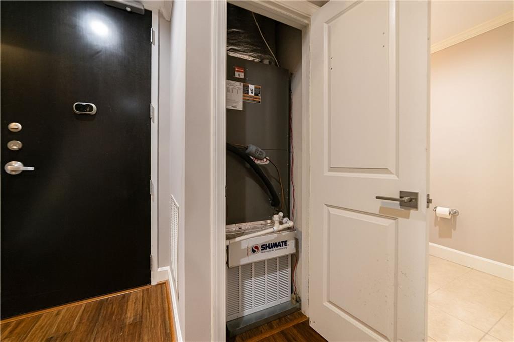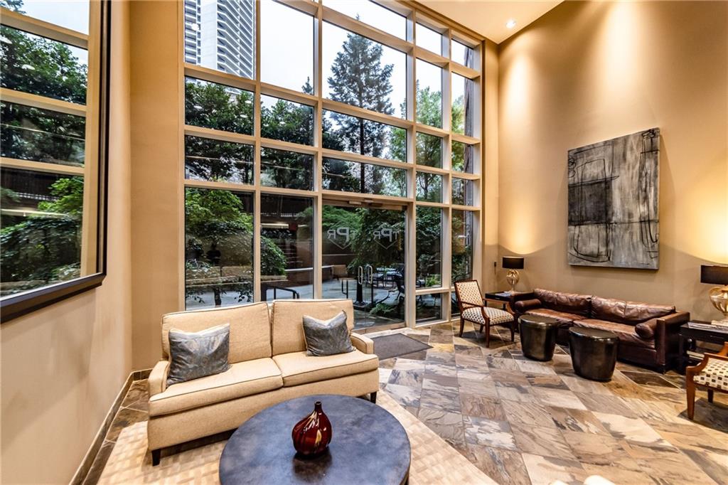 2626 Peachtree Road NW #412 Exquisite Two-Story Condo in The Peachtree Residences, Buckhead! Experience the pinnacle of luxury living in this exquisite two-story condo at The Peachtree Residences, situated in the heart of Buckhead. This rare gem offers an unparalleled lifestyle and is undoubtedly a must-see for the discerning buyer. On the main level, you will find a gourmet chef’s kitchen featuring stunning cabinetry, top-of-the-line stainless steel appliances, a sophisticated double-door refrigerator, a five-burner gas range, gleaming granite countertops, a modern backsplash, and an expansive walk-in pantry. The elegant family room boasts premium bamboo flooring, soaring 16-foot ceilings, and an abundance of natural light streaming through large windows adorned with premium Hunter Douglas blinds, offering remote-controlled privacy and comfort. The owner’s suite, also located on the main level, includes soundproof windows and a spa-like bathroom, providing a sanctuary of peace and relaxation. A conveniently situated powder room adds to the ease and comfort of both you and your guests. On the second level, a versatile secondary bedroom serves perfectly as a guest bedroom or an additional owner’s suite, offering flexibility and luxury. The strategically placed laundry room provides ease of use, while a chic loft area offers an ideal space for a home office, personal yoga studio, or gym, adding a touch of versatility to your living space. This unit boasts luxury upgrades, including a state-of-the-art electric tankless water heater installed in 2023, a cutting-edge dual Lennox Elite HVAC system installed in 2023, a dual system shower head in the owner’s suite added in 2023, contemporary lighting fixtures throughout, and spacious walk-in closets in both bedrooms. Additionally, the unit comes with two dedicated parking spaces. And did I mention that washer and dryer are also staying? The Peachtree Residences offer exclusive community amenities such as 24-hour concierge service ensuring a seamless living experience, an elegant meeting room for business and social gatherings, a fully equipped workout facility and gym, a serene garden courtyard with a fountain and community gas grill, a private dog park for your furry friends, and a rooftop terrace featuring a splash pool and gas fireplace (currently under renovation), with breathtaking views of Downtown, Midtown, and Buckhead. The prime location of this condo is within walking distance to the vibrant Peachtree Road Farmers Market and Peachtree Battle Shopping Center, a short drive to Trader Joe’s and Publix, and in close proximity to the finest dining and shopping destinations, including The Shops of Buckhead, Lenox Mall, and Phipps Plaza. This extraordinary condo marries exceptional design with modern upgrades and unbeatable amenities, offering a lifestyle of luxury and convenience. Don’t miss the opportunity to make this prestigious address your new home. Talk with your lender about FHA spot approval option for financing as well. Water/Sewer, Gas as well as Cable/Internet are included in monthly dues.