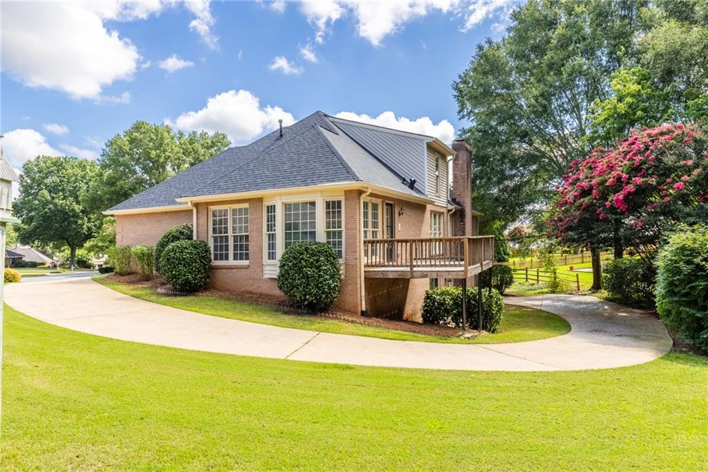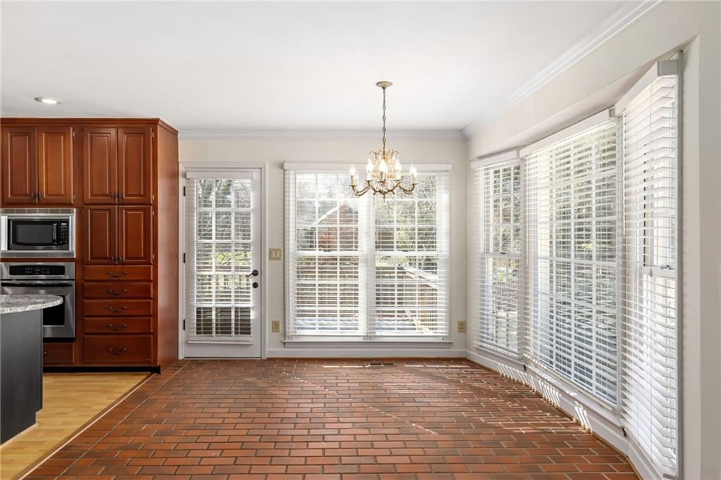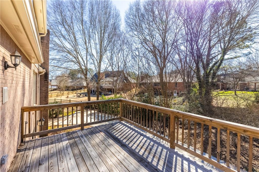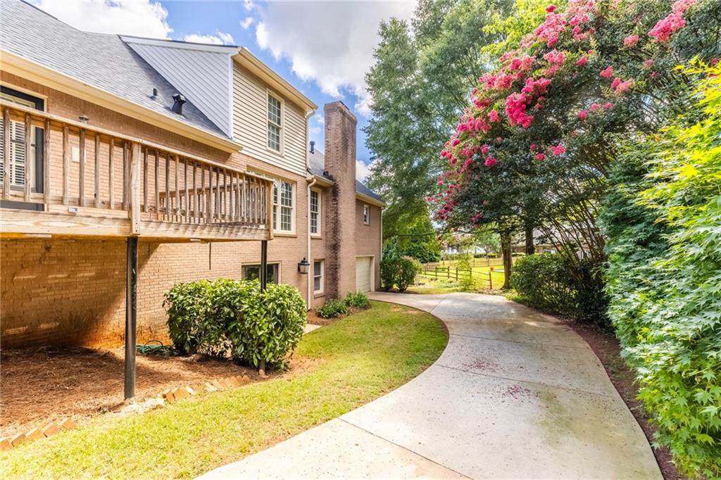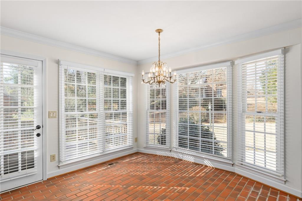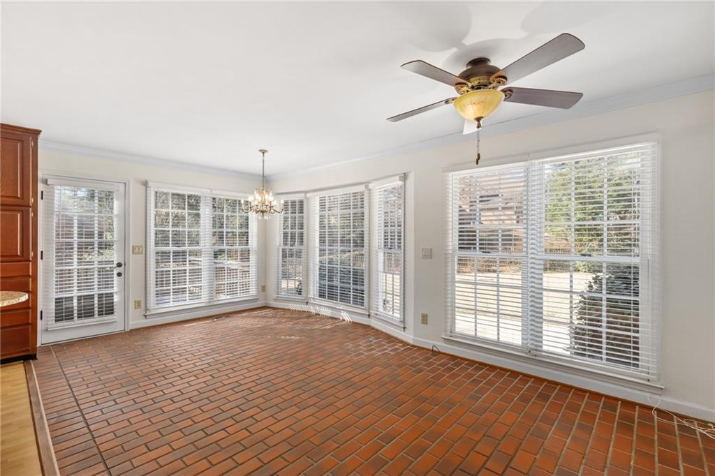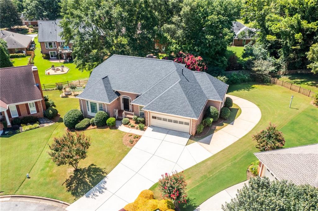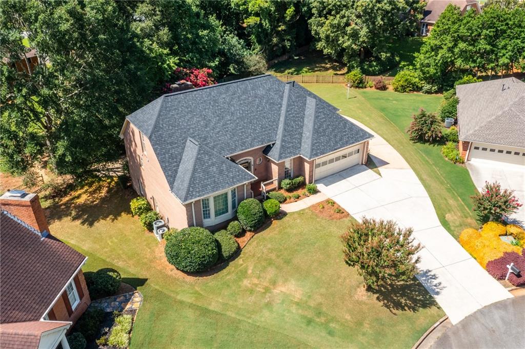 Welcome home to this all-brick, one-owner Chathambilt executive residence, nestled in Alpharetta’s highly sought-after North Farm community. This traditional home offers timeless appeal with a NEW roof and a rare, extended wraparound driveway that leads to a terrace-level garage—ideal for storing a vintage car, boat, or extra vehicles. Set on a quiet cul-de-sac with a gently sloping yard, the property welcomes you with a gracious entry foyer that opens into a vaulted great room featuring a masonry fireplace and elegant wainscot trim. A formal dining room, framed by a classic cased opening and bathed in natural light from three oversized windows, sits just off the main living space. The updated kitchen boasts rich stained cabinetry, granite countertops, stainless steel appliances, and flows seamlessly into a warm and inviting keeping room with brick paver flooring, a built-in desk, and walls of windows that flood the space with light.