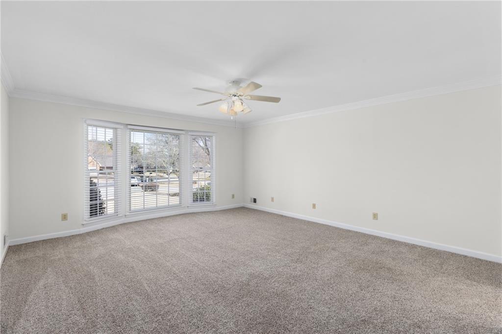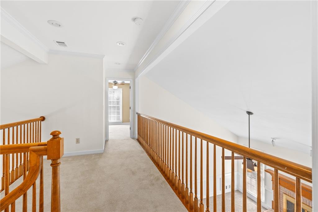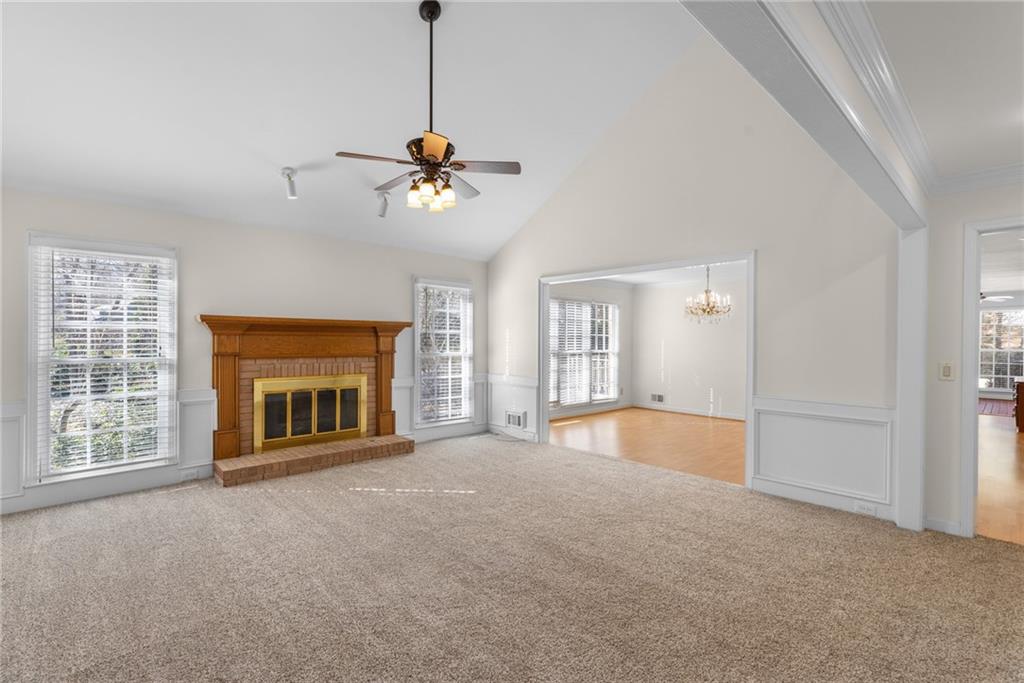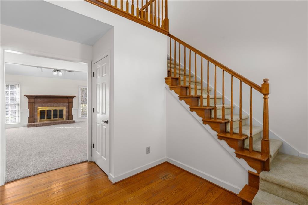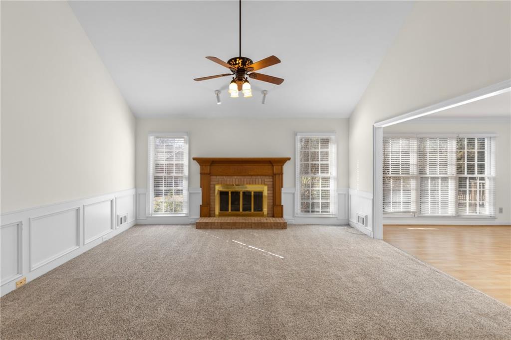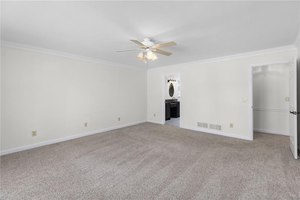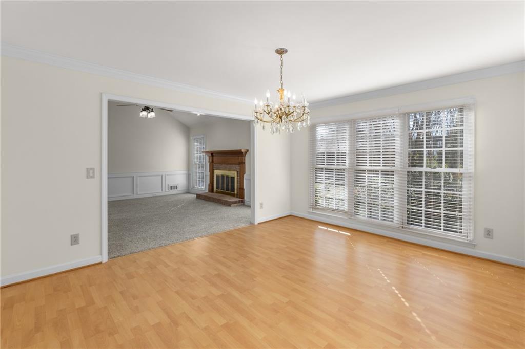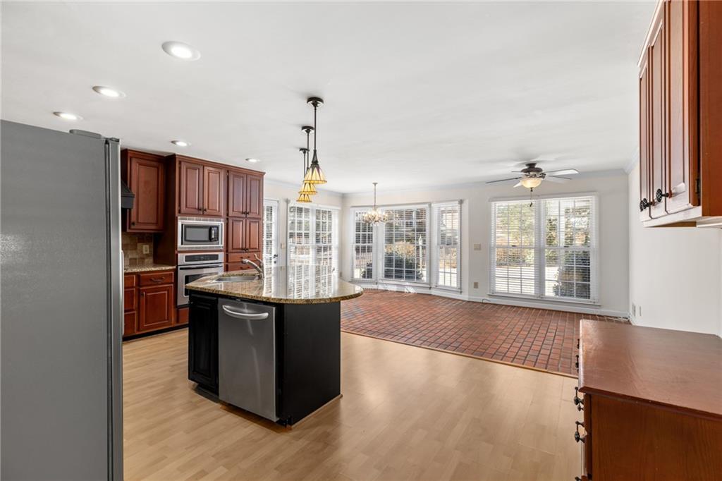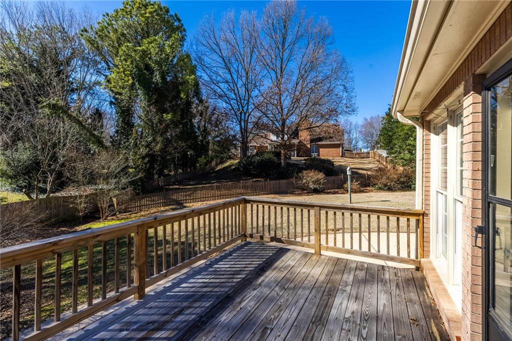 Welcome home to this all-brick, one-owner Chathambilt executive residence, nestled in Alpharetta’s highly sought-after North Farm community. This traditional home offers timeless appeal with a NEW roof and a rare, extended wraparound driveway that leads to a terrace-level garage—ideal for storing a vintage car, boat, or extra vehicles. Set on a quiet cul-de-sac with a gently sloping yard, the property welcomes you with a gracious entry foyer that opens into a vaulted great room featuring a masonry fireplace and elegant wainscot trim. A formal dining room, framed by a classic cased opening and bathed in natural light from three oversized windows, sits just off the main living space. The updated kitchen boasts rich stained cabinetry, granite countertops, stainless steel appliances, and flows seamlessly into a warm and inviting keeping room with brick paver flooring, a built-in desk, and walls of windows that flood the space with light.