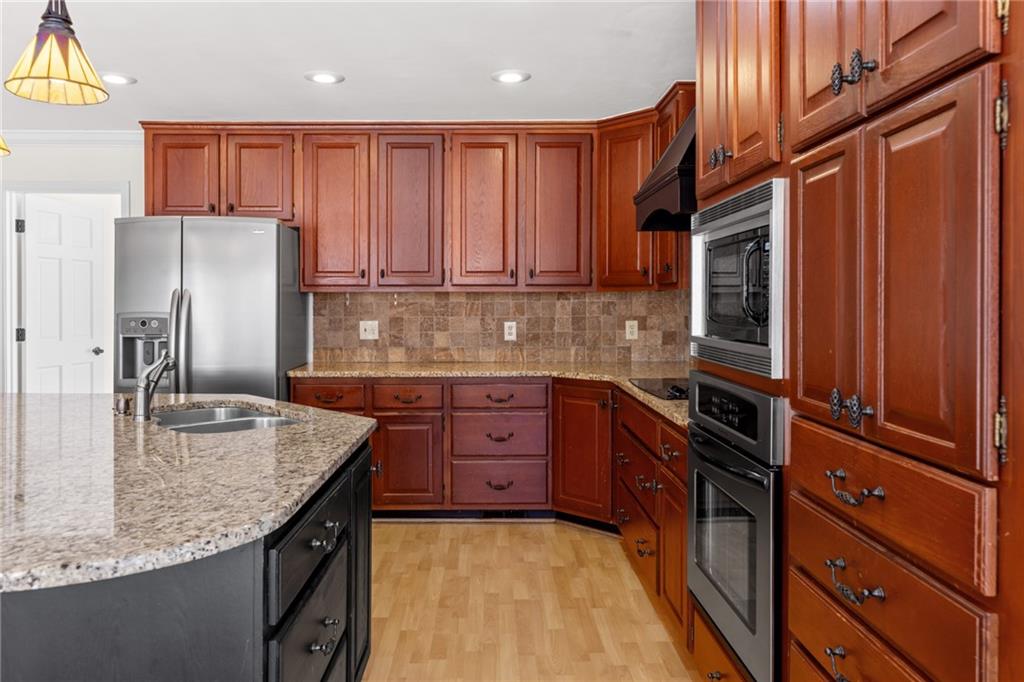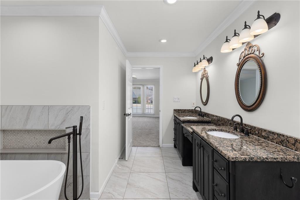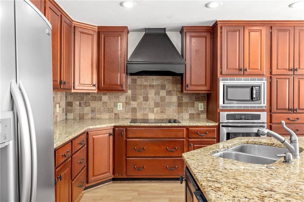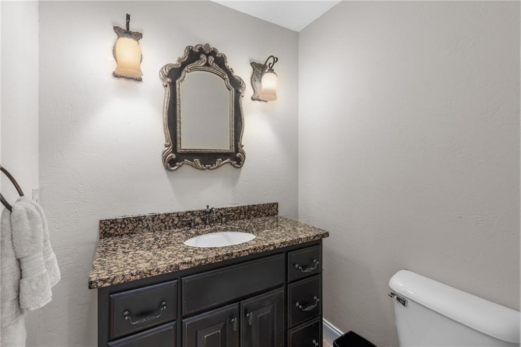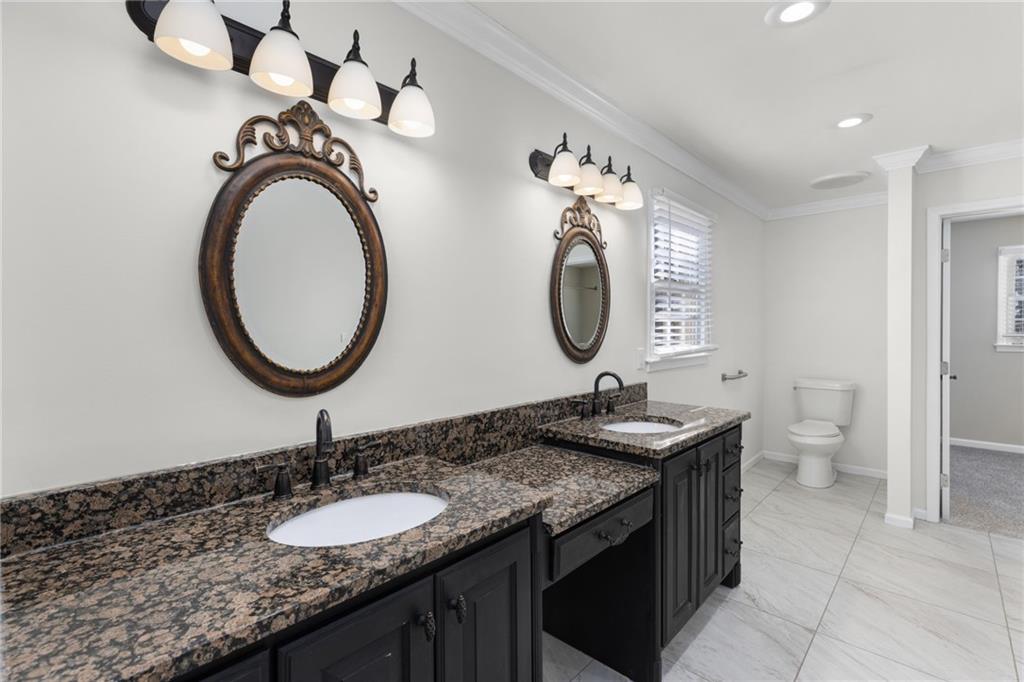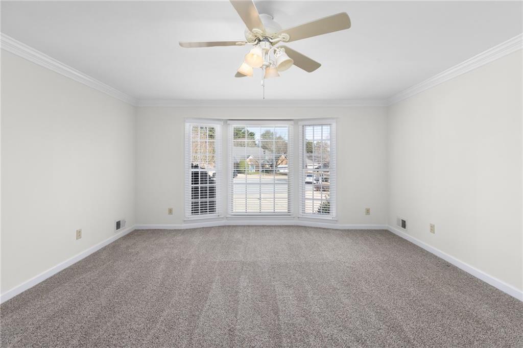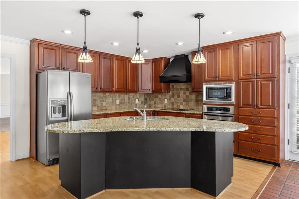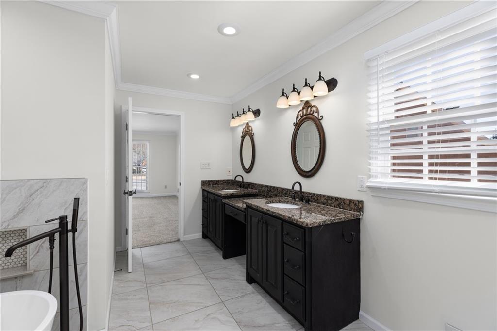Welcome home to this all-brick, one-owner Chathambilt executive residence, nestled in Alpharetta’s highly sought-after North Farm community. This traditional home offers timeless appeal with a NEW roof and a rare, extended wraparound driveway that leads to a terrace-level garage—ideal for storing a vintage car, boat, or extra vehicles. Set on a quiet cul-de-sac with a gently sloping yard, the property welcomes you with a gracious entry foyer that opens into a vaulted great room featuring a masonry fireplace and elegant wainscot trim. A formal dining room, framed by a classic cased opening and bathed in natural light from three oversized windows, sits just off the main living space. The updated kitchen boasts rich stained cabinetry, granite countertops, stainless steel appliances, and flows seamlessly into a warm and inviting keeping room with brick paver flooring, a built-in desk, and walls of windows that flood the space with light.
