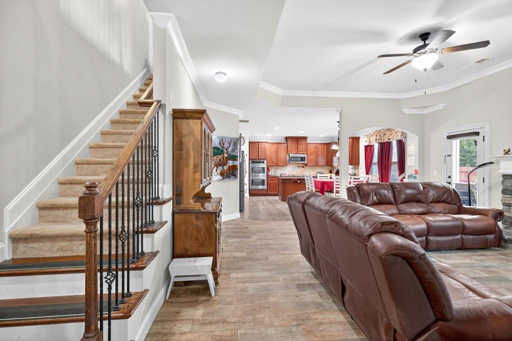 MOTIVATED SELLER! Bring Your Offer - Let's Discuss. Welcome to 521 Georgia Circle, where thoughtful design meets everyday convenience. This spacious home offers 5 bedrooms and 4 full baths, including a guest suite with walk-in shower on the main level—perfect for visitors or multi-generational living. Step inside to discover a formal dining room for gatherings, a library with Murphy bed for added versatility, and a custom walk-in pantry designed for ultimate organization. The gourmet kitchen is a chef’s dream, featuring a pot filler, double ovens, gas stove, and expansive eat-in area, all flowing seamlessly into the open-concept family room. Upstairs, you’ll find the expansive Owner's Suite plus 3 additional bedrooms and 3 full baths, including a convenient Jack-and-Jill bath. A media/flex room offers endless possibilities—game nights, home theater, or a quiet retreat. The owner’s suite is a true sanctuary, with a spacious sitting area ideal for a nursery or office, and an expansive custom closet built to impress. Step outside to a spacious, flat, fenced backyard and a screened-in porch—the perfect space for entertaining or relaxing year-round. Set in a vibrant community with swimming, pickle-ball, and more, this home is convenient to everything—shopping, dining, schools, and commuter routes. Additional upgrades include a sprinkler system and TrimLight - a permanent professionally installed, programmable, exterior lighting system. With virtually unlimited colors, you have the ability to control and customize your lighting in an easy to use app. Seller is motivated so bring all offers!