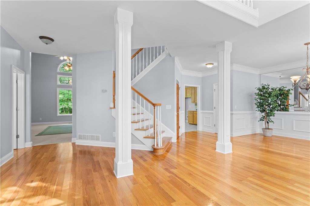 Nestled on a quiet cul-de-sac, this home offers a lifestyle of distinction with rare features you won’t easily find: a side-entry 3-car garage, three-sided brick construction, and a fully finished basement with a 5th bedroom and oversized bath. With 5 bedrooms vs. 4 and 4.5 baths vs. 2.5, this home was designed for true luxury living—offering space for multi-generational households, dual home offices, or the perfect guest retreat, all without compromise. Step inside to an elegant open stairwell with switchback design and overlook into the soaring two-story family room, where columns frame the fireside gathering space, creating a sense of both grandeur and warmth. Spanning three finished levels, you’ll find everything your lifestyle calls for: a media room for movie nights, gym for wellness, an office for productivity, bonus rooms for hobbies, and a walk-out basement that adds unmatched versatility. The interior feels brand new with fresh paint throughout, sparkling new toilets, and stunning quartzite countertops in the kitchen that blend durability with elegance. Add in the thoughtful details—crown molding, vaulted ceilings, his & hers closets, a spa-worthy whirlpool tub, and airy open spaces—and you have the perfect mix of sophistication and comfort. Step outside and enjoy your landscaped yard and cul-de-sac setting—ideal for peace, privacy, and play. Community amenities include a pool and tennis, with top-rated schools, shopping, and dining just minutes away. This is more than a house—it’s executive living, reimagined. With its side-entry 3-car garage, rare cul-de-sac location, three-sided brick, fresh upgrades, and 5 bedrooms with 4.5 baths, this home offers luxury, convenience, and flexibility in one exceptional package.