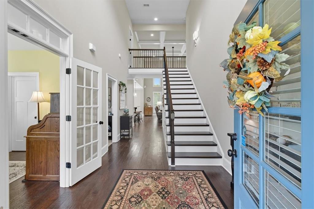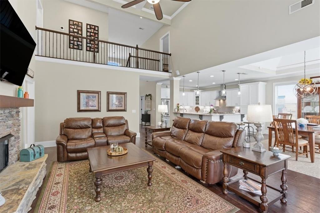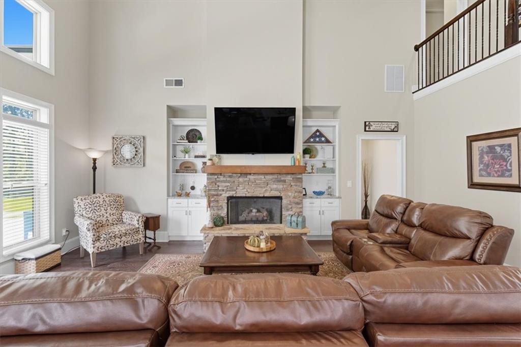 Upstairs, a catwalk with views to the main floor leads to three generous guest suites and a full bath, providing ample space for family or visitors, along with attic access for storage. McKaskey Ridge is a premier community in Cartersville, moments away from Bartow Beach and Lake Allatoona, top-rated K-12 schools, great shopping, diverse dining options, and easy access to major highways. This is a rare chance to combine luxury finishes, a highly functional, family-friendly layout, and superior outdoor living.