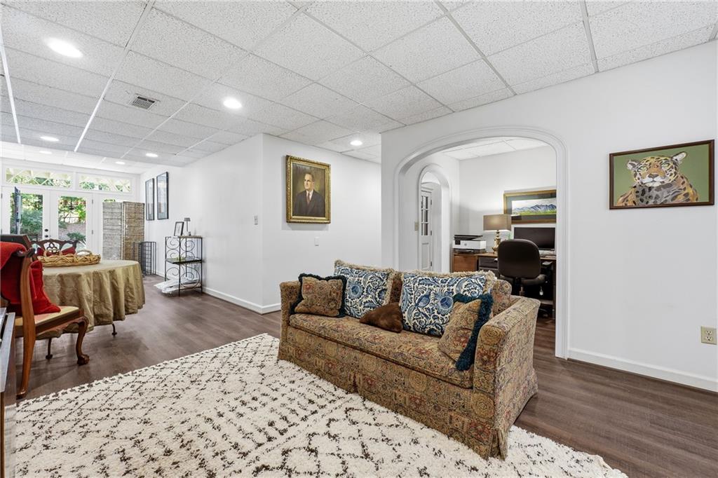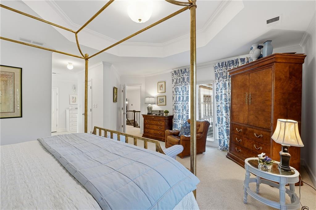 Additional highlights include two fireplaces, ample overflow parking nearby, and a wooded backdrop offering year-round privacy. Ideally located near the Atlanta Athletic Club, Country Club of the South, The Forum, and Avalon, this exceptional home delivers both tranquil living and unmatched convenience in one of North Fulton’s most prestigious communities—with picturesque views of the private neighborhood park.