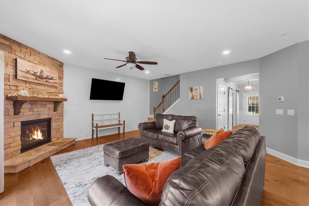 You will feel like you're at home from the minute you arrive. Located at 6001 Ash Hill Place with a view of hole #7 in Reunion Country Club, this 4-bedroom, 3-bathroom house has everything you want. Upon entering through the foyer, you will notice this home has beautiful engineered hardwood floors throughout the main level making it great for entertaining and easy to clean. This home has it all: a dining room, butler's pantry including wine refrigerator, gourmet kitchen with granite countertops, walk-in pantry, and built-in homework station. The sunroom is a nice touch for extra space to curl up with a book. The open floor plan with gas fireplace in the family room and surround sound will make a great movie night. The Flex room/Study with barn doors and adjacent full bathroom round off the main floor offering ideal space for a home office or guest room. The 2+ car garage has golf cart parking and plenty of storage.