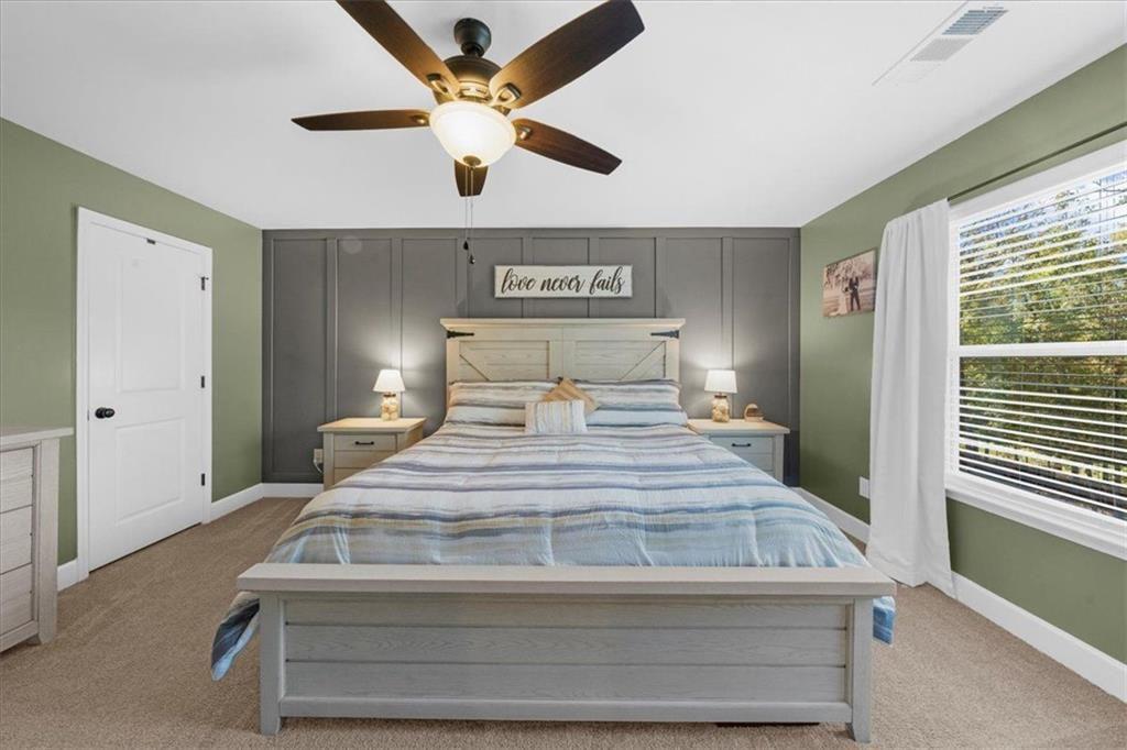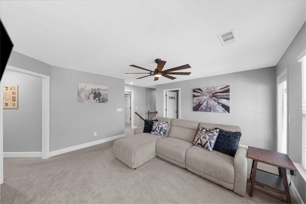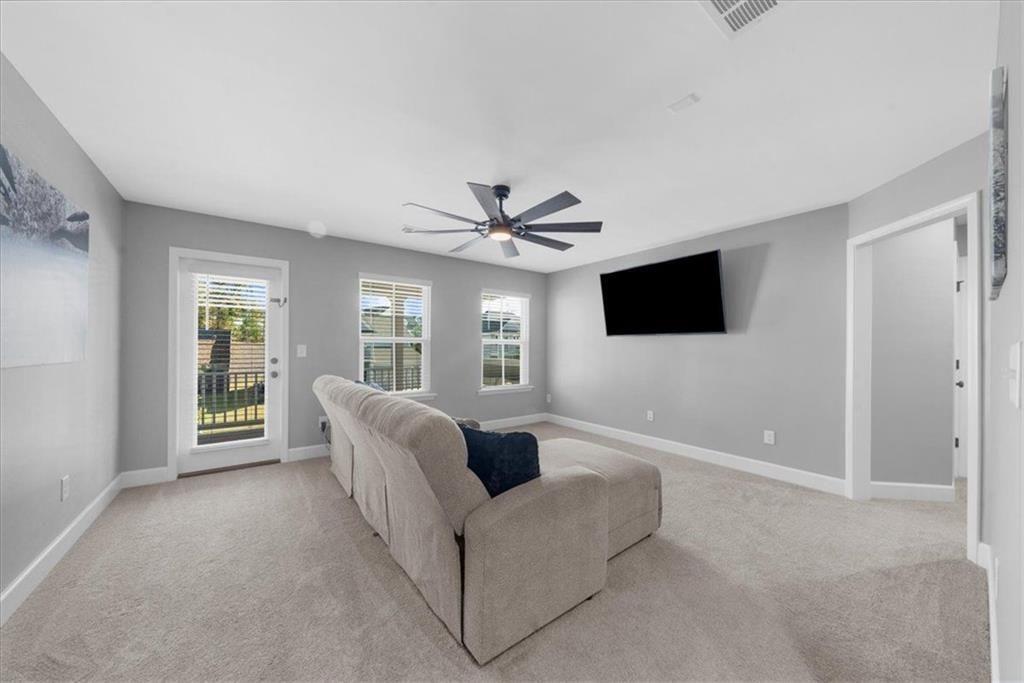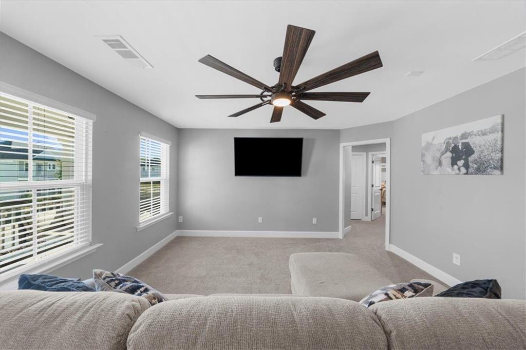 Once you retreat to the second floor, you’ll find a large open bonus room/2nd living area and an upper outside covered balcony, along with 3 spacious bedrooms with large closets, a secondary bathroom with a double vanity, and the laundry room. Next, you will enter the large primary suite featuring 2 spacious closets and a view overlooking the golf course. Relax in the oversized tub or take an endless shower with the tankless on-demand upgraded hot water heater.