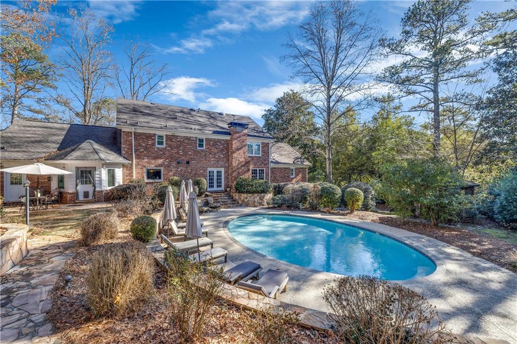 Private 1+ Acre Retreat Beautifully Renovated & Upgraded with Dual Primary Suites & Private Saltwater Pool! Tucked away on a quiet, private lot just minutes from Dunwoody Country Club, this home is built for living—and entertaining. With two primary suites, one on the main level, a walkout saltwater pool, and lush English-style gardens with gazebo and stonework, it’s a true backyard paradise. Inside, bright, open spaces feature luxury vinyl plank flooring (original hardwoods underneath!), elegant archways, and fresh, modern finishes. The great room with built-in bar opens to the pool, and the upgraded kitchen features a Dacor professional range, counter-depth fridge, and pool views. Upstairs, the second primary suite offers a stunning new spa-style bath with soaking tub, sizable shower, walk-in closet, and bonus flex space for an office or extra storage. The finished terrace level adds even more living options—full kitchen, bedroom, bath, gym, second laundry, and separate pool access. With ALL new windows, HVAC, driveway, and septic system, it’s move-in ready and in excellent condition! Quick access to GA-400, top schools, and the areas best amenities makes this home a rare find and a great value!