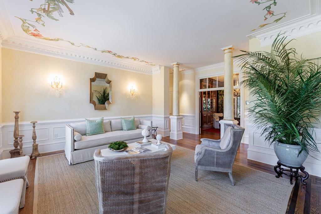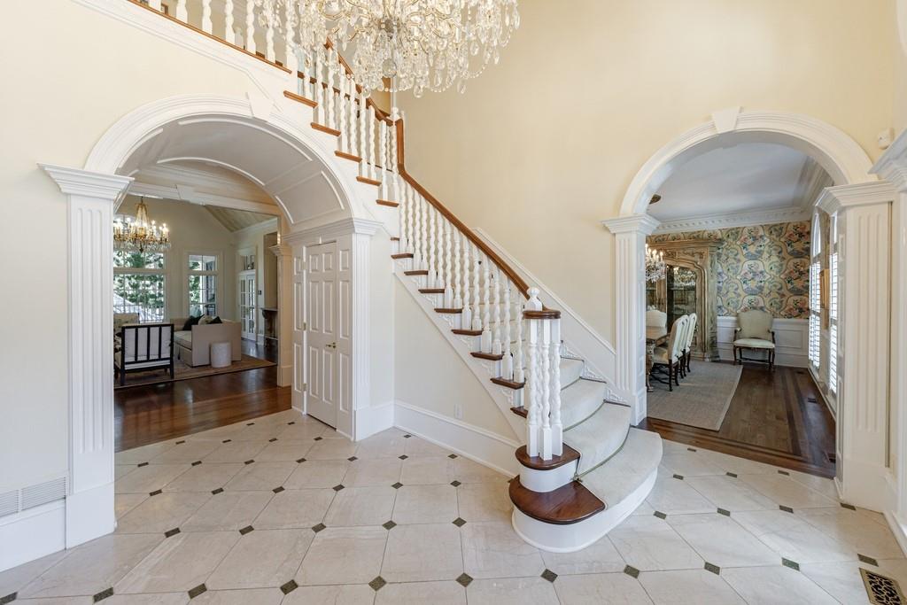 Truly a one-of-a-kind estate set within an exclusive gated enclave of just a few homes. A private gated entrance opens to a long, sweeping driveway framed by a rolling front lawn, twin ponds—one on each side—and a charming gazebo. The circular drive leads to a stately columned front porch and striking double doors.