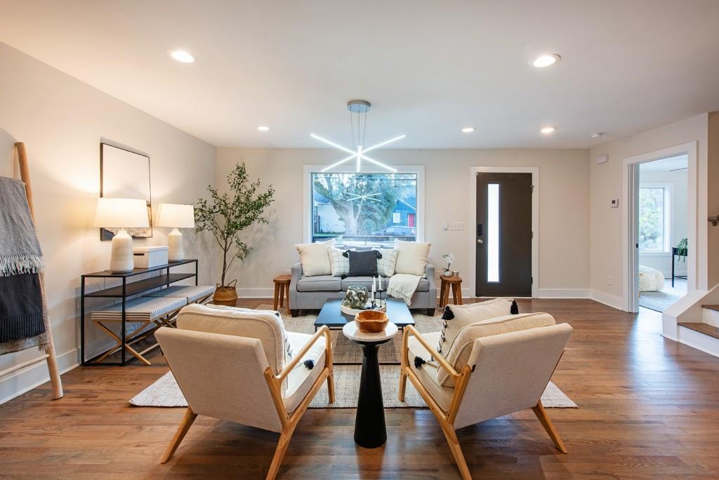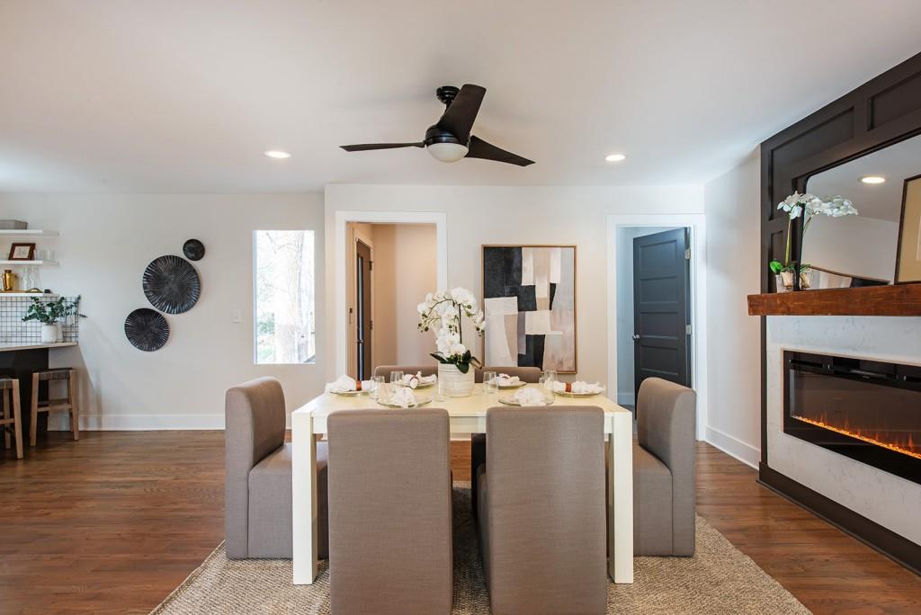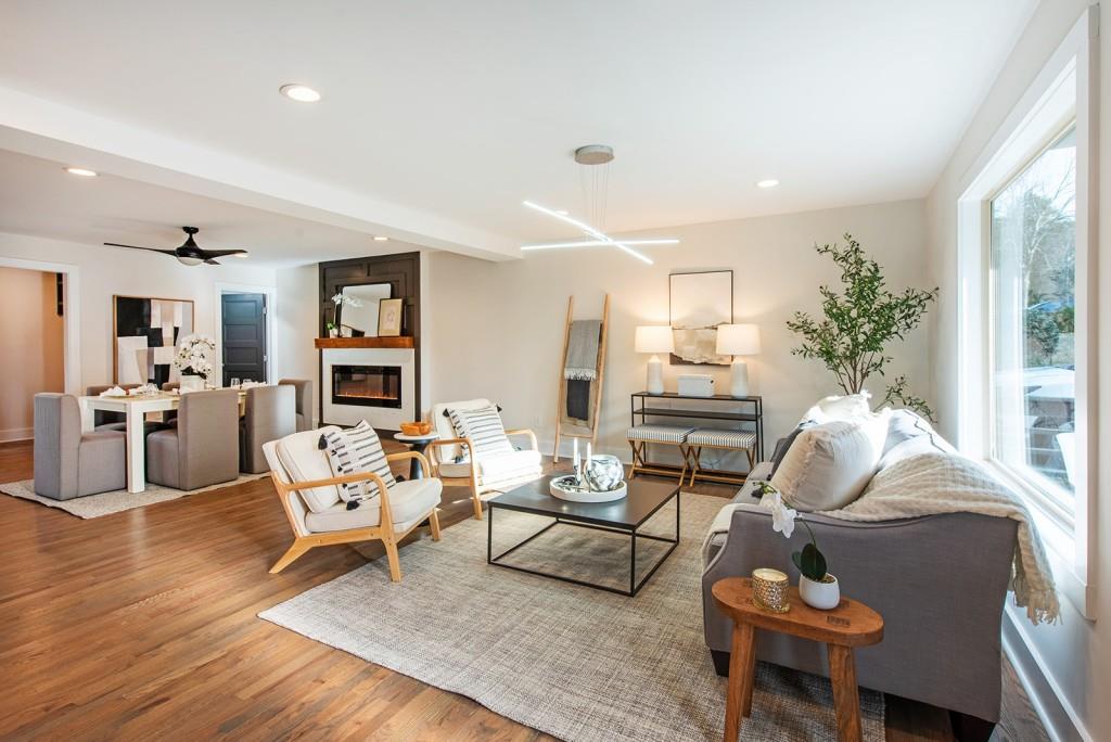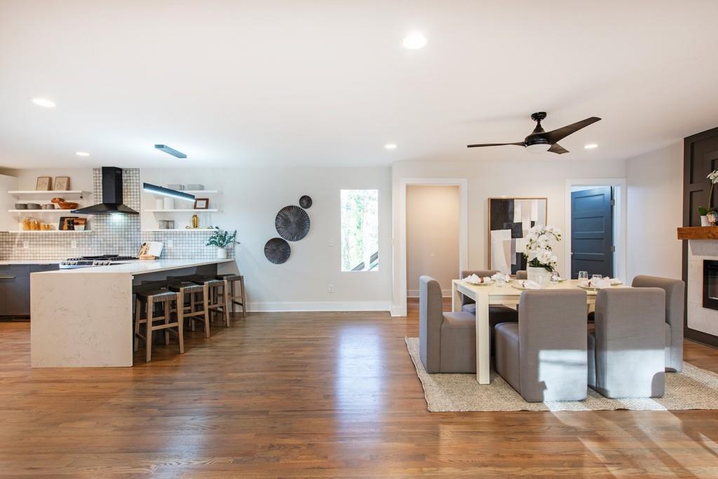 Welcome to the best Parkview has to offer! This contemporary home is perfectly designed for today's lifestyle. As you enter through the front door, enjoy fully open-concept living for an entertainer's dream set-up. The spacious kitchen, dining, and living areas feature thoughtful details, gorgeous hardwood floors throughout, a fireplace, expansive space for a multitude of guests, and beautiful natural light streaming in. The kitchen will be sure to excite as it features quartz countertops, stainless steel appliances, built-in wine cooler, ample storage, a large peninsula /breakfast bar, and more. Also on the main level is a full ensuite guest room, that serves as a fantastic flex/ office space, as well as a powder room for guests, and a mudroom/ drop-off zone. As you continue upstairs, the oversized primary bedroom will wow you with its 2 custom walk-in closets, private covered balcony overlooking the front lawn, and stunning ensuite bath with double vanities, oversized walk-in shower, stand alone soaking tub, and gorgeous tile work. Additionally, the 2 other bedrooms also feature en-suite bathrooms, creating a truly private space for visitors and residents. The home also features multiple outdoor spaces including a covered front porch, rear deck overlooking the large, fenced-in backyard. This home is located just seconds from Dekalb Memorial Park, East Lake Golf Club, Kirkwood Village, East Atlanta Village, the Atlanta Beltline, and more. Call 331 Eleanor St home, today!