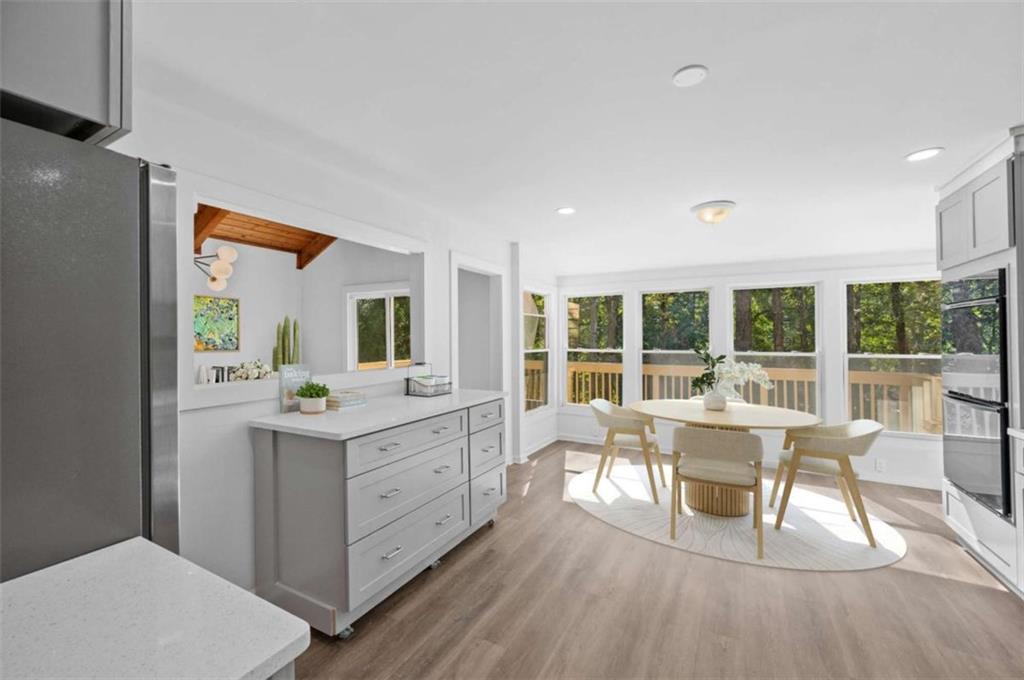OWNER FINANCING IS AVAILABLE. Do not miss this window of opportunity! This house is nothing short of a paradise. As of 10/2025 it's an all-new home from NEW ROOF, NEW Floors to Ceilings and everything in between, inside/out with a $200,000 renovation on By far, the best and the most beautiful lot in the highly desirable East Cobb Top rated school district, East Spring Lake community, a hidden gem.As one of the last top-quality contemporary homes built in North Atlanta area, it offers spaciousness and brightness with modern simplicity unmatched by any home being built today. This 4-5 bedroom jewel with 3 amazing shiny-new baths will be the envy of all your friends and family forever. After all, whom do you know who falls asleep with the sound of a peaceful fountain in their bedroom or office, who cooks on movable kitchen island on wheels with brakes in a sun-filled kitchen on counters tops that shimmer with the rays of sunlight reflected in crystals, and who can house important family or friends in an incredible in-law suit with marble bathroom and a large steam room, incredible lake-side family room with a deck and a special walkway to the private pond with a fountain as a private retreat for a shady afternoon beer or tea. The Best Lot in the Community on the lake with the fountain! Shows immaculate/fabulous features and move-in ready! The house is completely redone inside and outside including the landscaping. Unbeatable location - close proximity to the PARKS, Chattahoochee Natural Center, East Cobb Avenue, Restaurants, Shopping, Hospitals, easy quick Access to the I-400, I-285, Highest Rated Schools and a lot more..... COME OVER AND SEE BY YOURSELF.